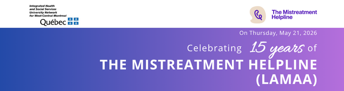In operation since October 1, 2010, The Mistreatment Helpline (formerly The Elder Mistreatment Helpline) is located at the CIUSSS West-Central Montreal and financed by the Secretariat aux Aînés. As part of the new 2022-2027 Government Action Plan, The Mistreatment Helpline is renewing its services for at least five years and expanding its mandate and partnerships, in order to continue to counter the mistreatment of older adults one call at a time.