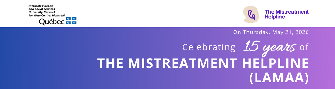 In operation since October 1, 2010, The Mistreatment Helpline (formerly The Elder Mistreatment Helpline) is located at the CIUSSS West-Central Montreal and financed by the Secretariat aux Aînés. As part of the new 2022-2027 Government Action Plan, The Mistreatment Helpline is renewing its services for at least five years and expanding its mandate and partnerships, in order to continue to counter the mistreatment of older adults one call at a time.