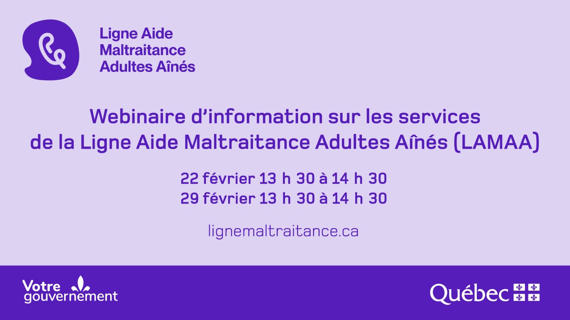 En opération depuis le 1e octobre 2010, la Ligne Aide Maltraitance Adultes Aînés (anciennement Ligne Aide Abus Aînés) est implantée au CIUSSS du Centre-Ouest de l’île de Montréal et financée par le Secrétariat aux aînés. Dans le cadre du nouveau Plan d’action gouvernemental pour contrer la maltraitance envers les personnes aînées 2022-2027 "Reconnaître et agir ensemble", la Ligne reconduit ses services et élargit son mandat et ses partenariats, afin de continuer à contrer la maltraitance un appel à la fois.